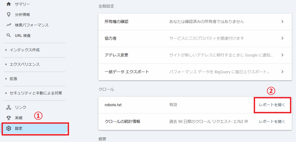 左メニューの下にある 「設定」 をクリックして「robots.txt」 をクリック