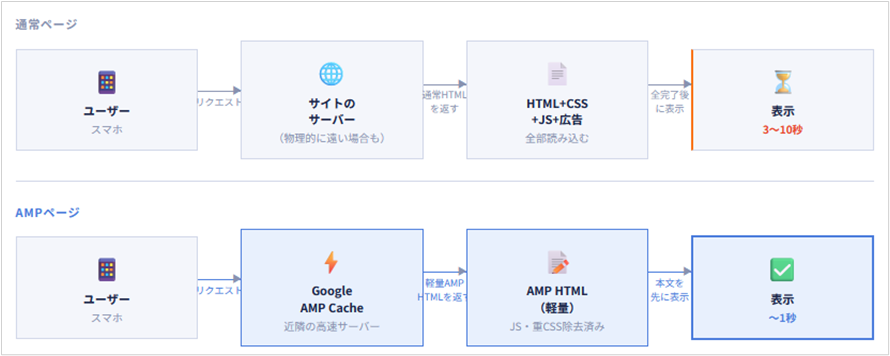 まず「通常ページ」と「AMPページ」それぞれの仕組みを比べてみましょう。