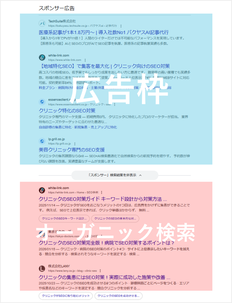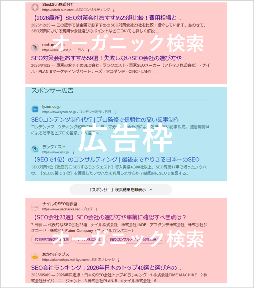 オーガニック検索と広告枠の違い