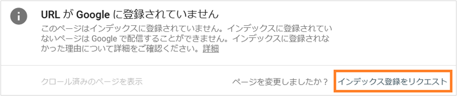 ページを復元または301リダイレクト設定を行った後は、Google Search Consoleの「URL検査」から該当ページのURLを送信し、インデックス登録をリクエストしましょう。