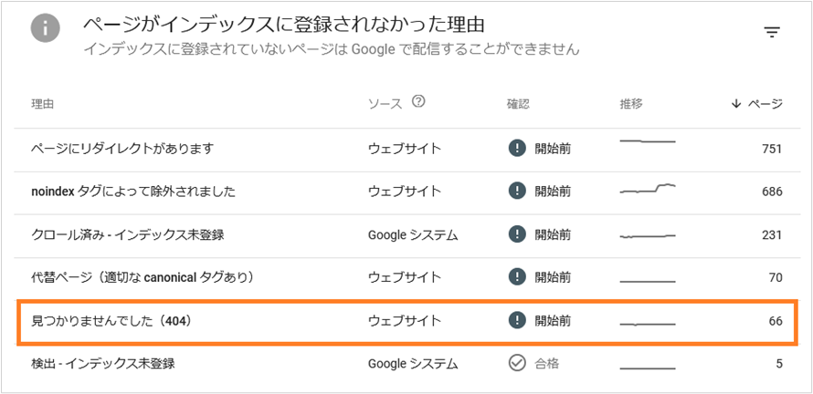 前述したとおり、「見つかりませんでした(404)」は、必ずしも修正が必要な問題ではありません。